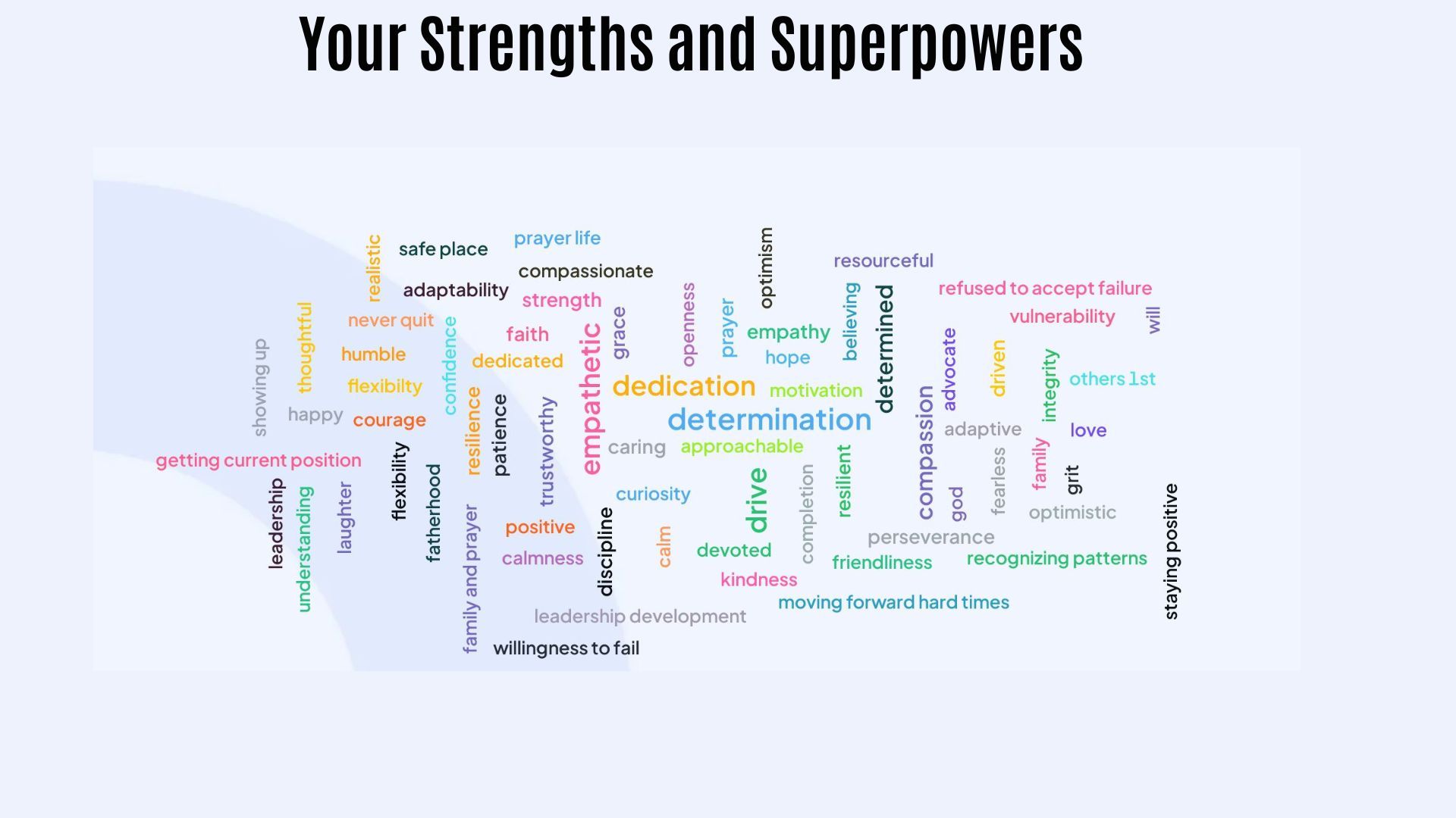 Below you will also find the MFA Positivity Playlist, created by you, a PDF of some relevant slides, a copy of your PERMA notes, along with the word cloud, once again created by you.